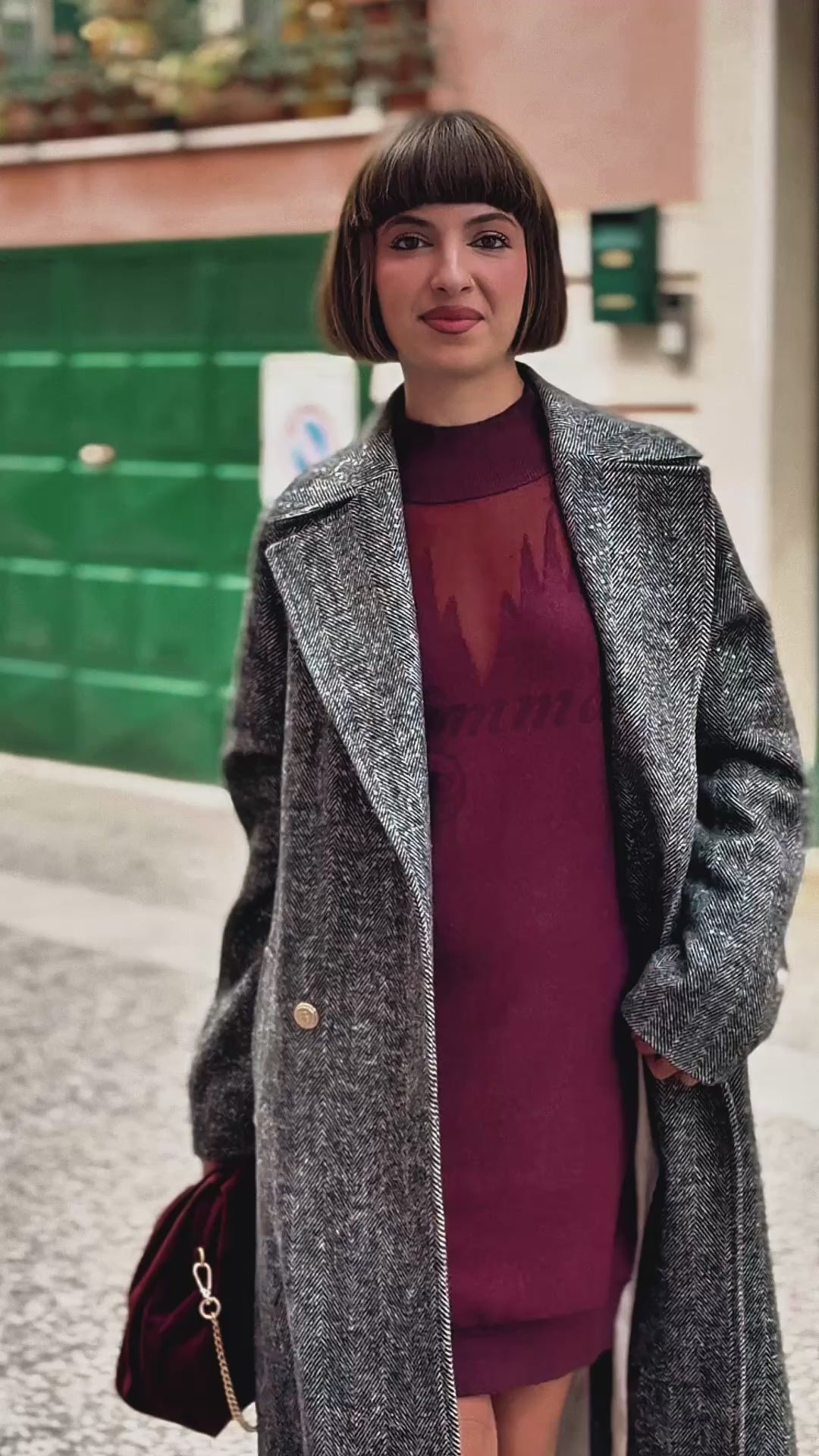 DIGITAL - Cappotto lungo con micro paillettes e bottoni oro donna