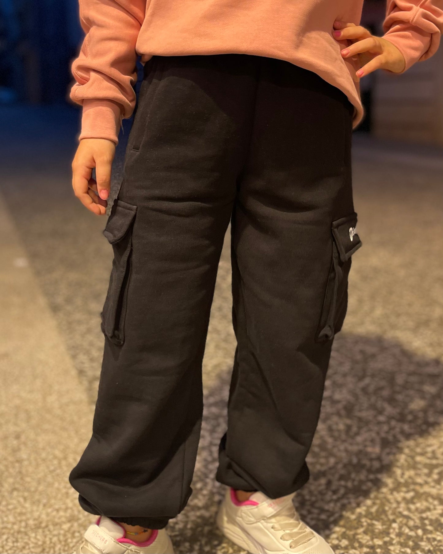 DISCLAIMER - Pantalone nero cargo con logo bambina
