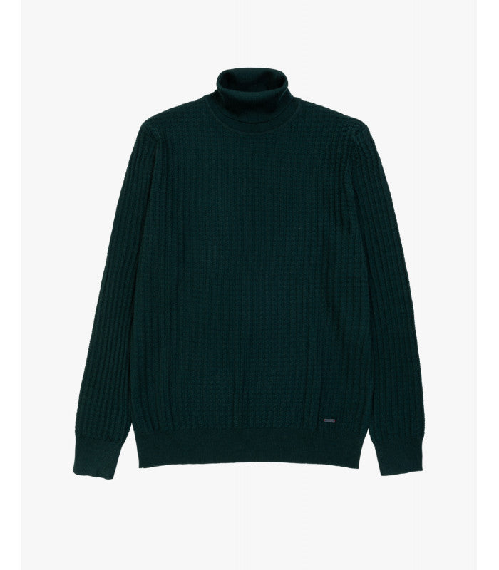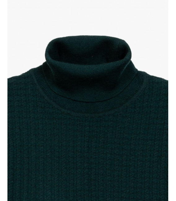 GIANNI LUPO - Dolcevita verde petrolio in lana rasata intrecciato uomo