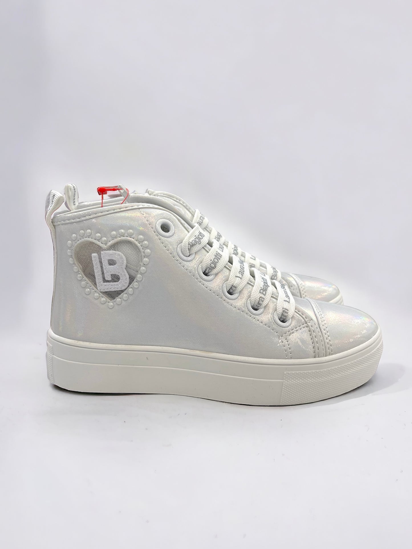 LAURA BIAGIOTTI LOVE - Sneakers bianco perla elegante con logo trasparente laterale
